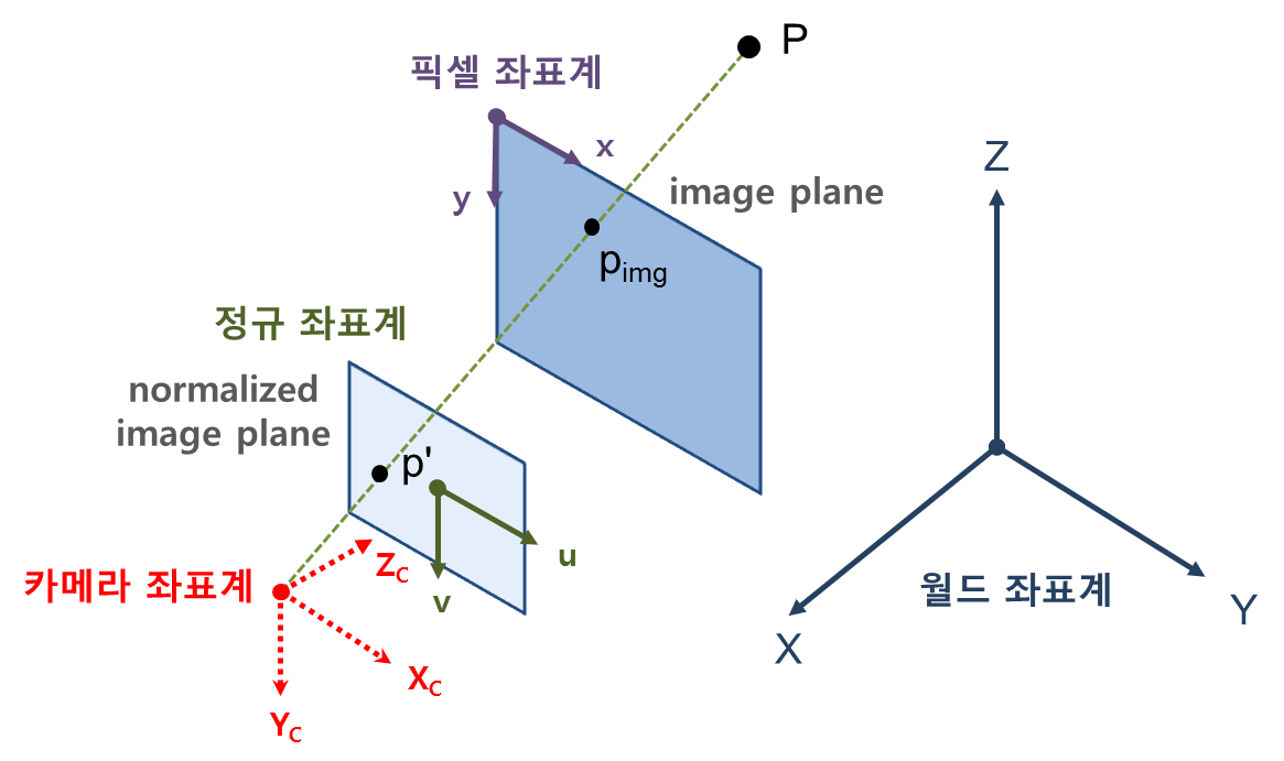 - 정규 이미지 좌표계 (Normalized image plane)